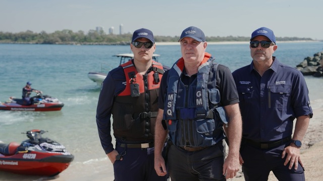 Maritime Safety Queensland General Manager Kell Dillon (centre) has endorsed a six-month statewide campaign of compliance patrols to address concerns of unsafe behaviour on Queensland’s waterways. (Supplied)