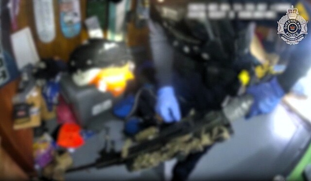 Exclusion zone established after weapons, explosives and drugs uncovered, Calliope