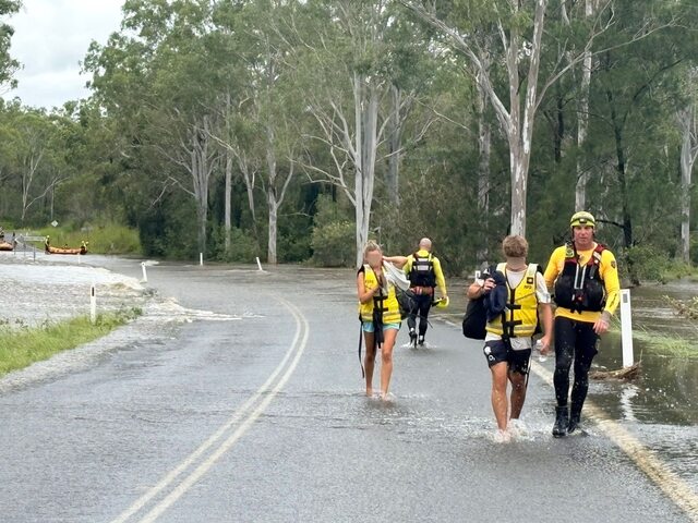 Rescue of 34 people from stranded bus in flood waters near Miriam Vale
